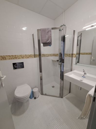 Le Lycée Nicolas Brémontier à Saint Pierre du Mont dispose de 4 chambres pédagogiques pour l'apprentissage des élèves dans le cadre du BTS Agent d'entretien. Les salles d'eau attenantes avaient besoin d'un rafraîchissement. Les revêtements vieillissants en pvc sur les sols et les murs donnaient un aspect plus proche du milieu hospitalier ou des maisons de retraite que des lieux d'hébergement hôtelier. Les appareils sanitaires et la configuration des douches étaient également vétustes. Le projet s'est orienté sur la modernisation des salles d'eau à travers l'utilisation des revêtements plus esthétiques comme la mosaïque, le remplacement des appareils sanitaires et la démolition des cloisons de douche pour l'intégration des cabines entièrement vitrées permettant d'avoir une sensation d'élargissement de l'espace. Une des salles d'eau a été adaptée aux personnes à mobilité réduite.